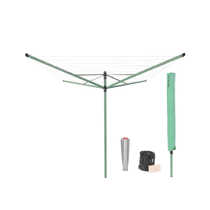 Външен простор Brabantia Lift-O-Matic 50m, метален шиш за вкопаване, калъф, торба с щипки, Leaf Green
